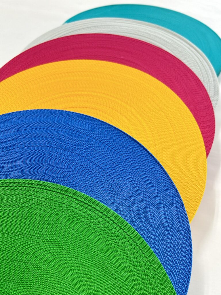 バッグやリュック、資材用ベルト、産業用途まで幅広く使われているテープ(細幅織物)。